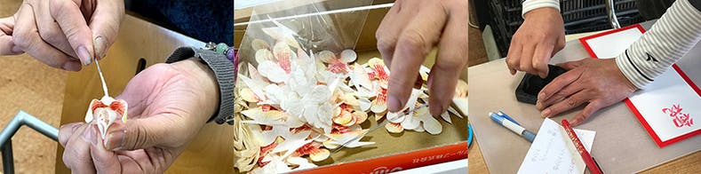 いつもは、熟練のパートさんや内職さんの手で完成度の高い商品として作り上げる和紙乃華ですが、今回は、障害者施設の方や特別支援学校の生徒さんなど幅広くいろんな方を巻き込んで、和紙乃華を作りたいと考えています。
