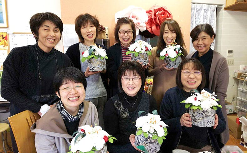 このコースは、和紙乃華をプロデュースする五十嵐純子本人が、みなさまのところへお伺いする出張ワークショップです。日頃、「どうしたら教えに来ていただけますか?」「何人ぐらい集めたら教えに来てくれますか?」など、よくお問い合わせをいただいております。