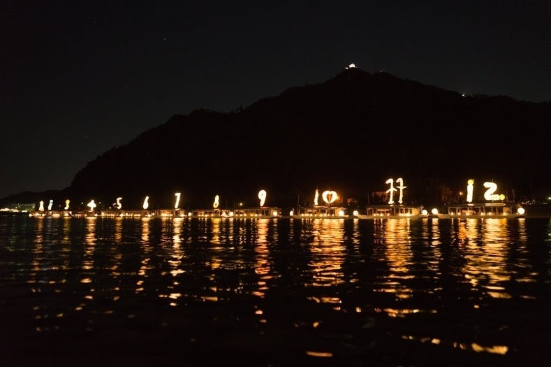 そんな岐阜の伝統文化を背景に、和紙と竹でつくった巨大なあかりを鵜飼船に載せて、冬至の夜の長良川に流し、過ぎゆく1年に思いをはせる――それが「こよみのよぶね」です。