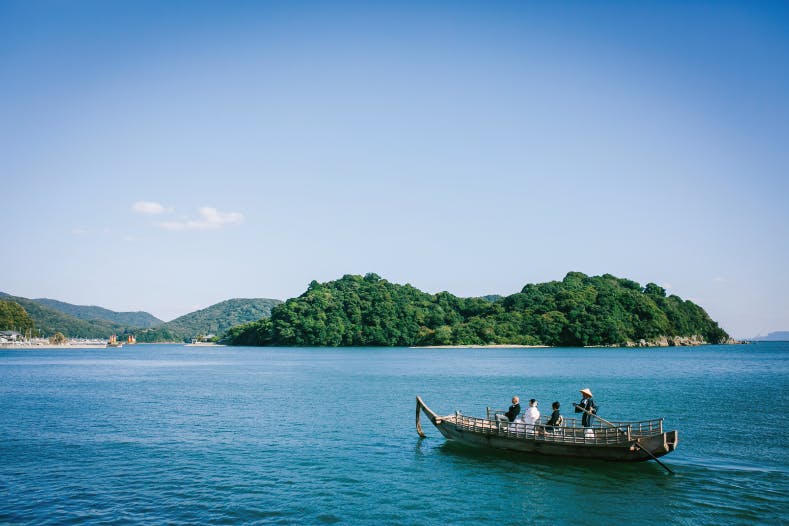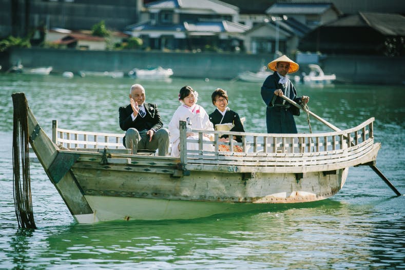 坂越浦から舟に揺られ、汐見の浜で待つ花婿のもとへ。