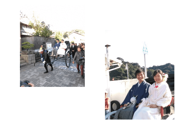 海に面して集落が発展した坂越地区では、道路が未整備で細く険しい峠道しかなく、陸の孤島だったため、海路から新婦が輿入れしていました。