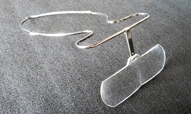 老眼鏡に頼りながら作業していますが、なかなか細かい作業は思うようにはかどりません。市販のルーペ(眼鏡の上から掛けるタイプが主流です)をいくつか購入ましたが、どれもなかなかしっくりこないのです。