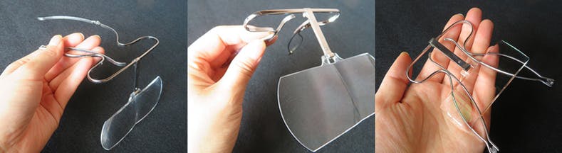よくあるルーペは眼鏡の上にかける感じのものが多いです。しかしそれだと、鼻バッドにめがねとルーペの重さが2重でかかり、どうしても痛くなってきます。