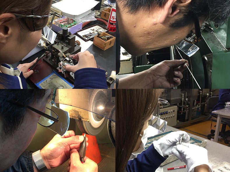 眼鏡部品ということで、製品である部品や作業は細かい手もと作業が多い職場です。