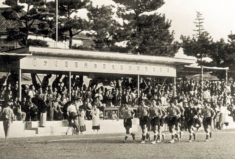 校技のサッカーを90年以上支えてきた藤枝東高のグラウンドはサッカー仕様で、天皇杯の舞台にもなり、1957年の静岡国体の際は天覧試合も行われました。コンクリートの観覧席だけでなく、松の木によじ登って試合を観戦したという昔からのファンもいて、多くの市民にも親しまれてきました。