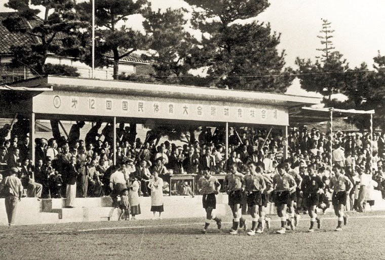 藤枝東高とサッカーの歴史は、1924年、前身である旧制志太中の初代校長の錦織兵三郎が、「蹴球」と呼ばれていたサッカーに着目して校技に指定したことから始まりました。錦織校長は全校生徒に「サッカー靴」を作らせ、登下校時にも履かせたと言います。2年後の1926年に、後にサッカー王国をけん引することとなるサッカー部が創部されました。