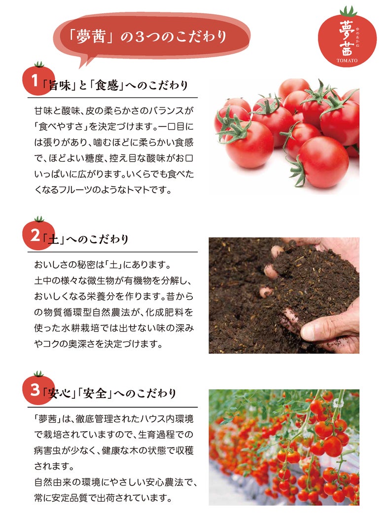 このとても美味しい「夢茜」トマトを一人でも多くの人に知ってもらって、食べて味わって欲しい!!