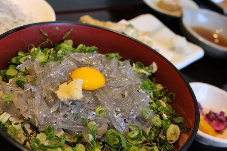 ▲舞阪港で水揚げされた鮮度抜群の生しらす丼。