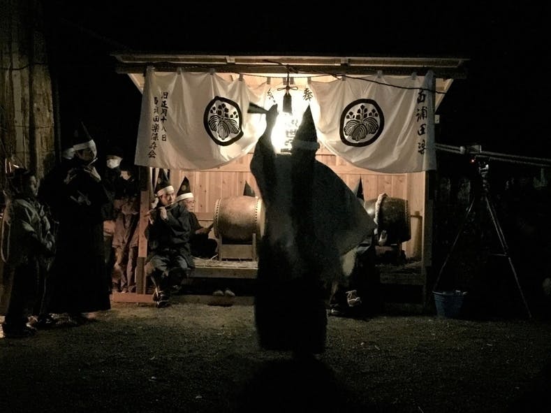 ▲夜が明けた後の「しずめ」。西浦(にしうれ)の田楽は、国指定の重要無形民俗文化財にも指定されています。