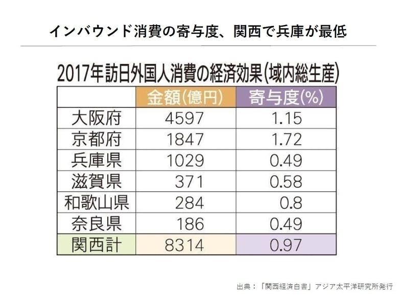 実際、「ひょうご」はインバウンド消費の寄与度が関西で最低だったんです。