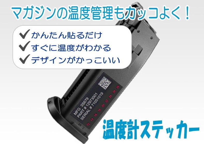 この温度計付きステッカーを貼るだけで、地味で手間だったマガジンの温度管理が、もっと簡単にカッコよくすることができます。
