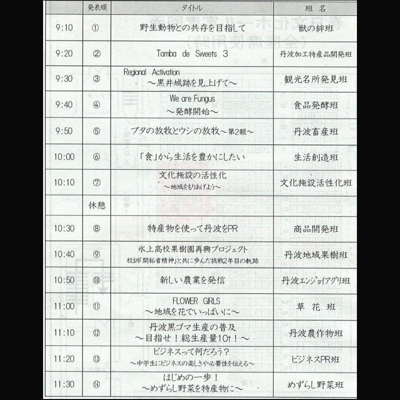 私達が担当させていただいている「起業経営」の授業もこれを目指しているのかと思っていたのですが、氷上高校ではもう一つ、地域の人の講演をしてもらい、その講演にまつわる課題をグループで話合う「地域未来」と言う授業があり、この3つの授業を合わせて「丹波学」と呼ぶのだそうです。