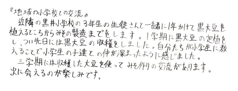 この黒大豆を使って、次は3学期には味噌作りも小学生と共に作るとのこと。