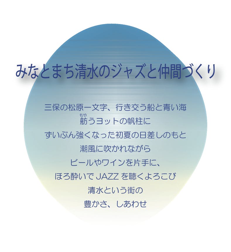 近代、清水港は産業・経済を重点として発展し、高度成長期の日本や清水に大いに貢献してきました。 しかし、港と市民の距離は、発展と相まって離れてきています。近代産業の「港町」から市民が共感する「みなとまち」への変化を願い、私たちNPO法人まちづくり考房SHIMIZUは、2004年からジャズフェスティバルを始めました。