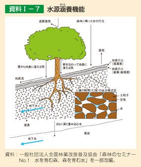 森林の保水能力は440億トン(琵琶湖の貯水量の1.6倍、生活用水使用量の3倍)