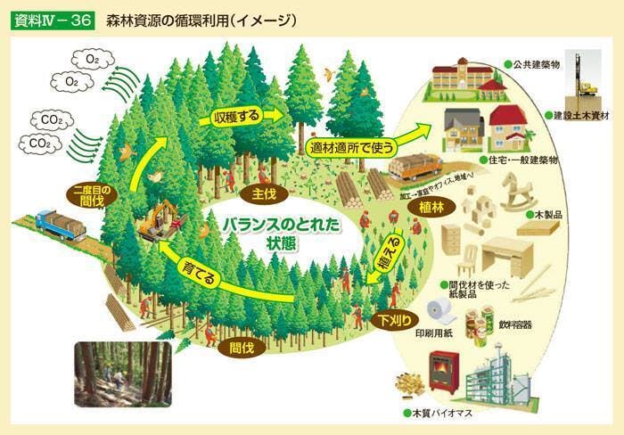 人工林において、自然がもつ本来の循環を保つためには森林を正しく保育、管理すべく計画的な間伐や主伐が重要とされています。