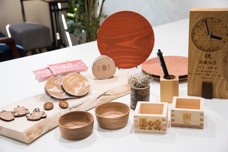 ↑飲食店でも、石川県の杉で作られたプレートにお料理を乗せて提供しています