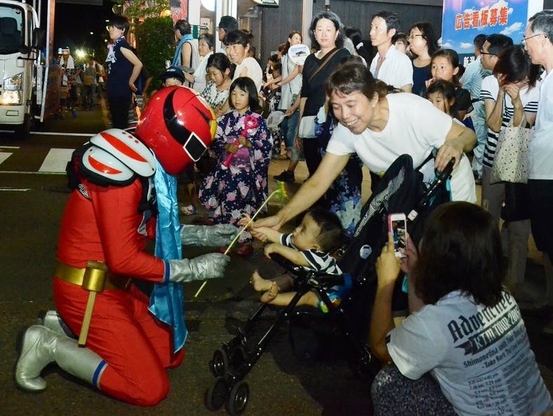 樽はやし大会の中で見附のご当地ヒーロー「ナジライヤー」も生まれ、毎年樽はやし大会を盛り上げています。また、樽はやし大会だけでなく市内の学校に呼ばれることもあり、子どもたちに大人気のナジライヤーです!