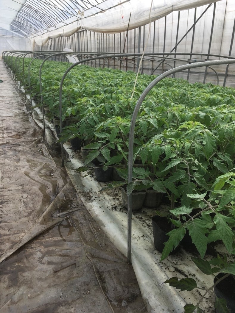 ▲ハウス倒壊で多くの野菜苗が破棄されました