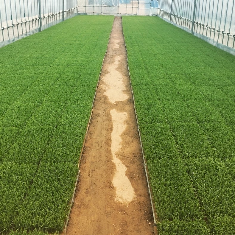 ▲お米の苗の多くはハウスで育てられます