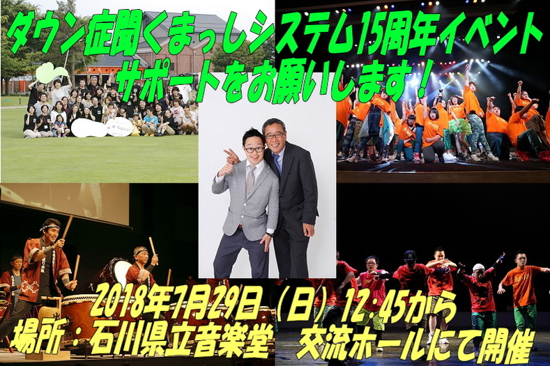 ダウン症聞くまっしシステム委員会では、社会啓発活動のの一環として毎年周年行事を行っており、今回15周年行事として、 平成30年7月29日(日)県立音楽堂交流ホールでイベントを行います。