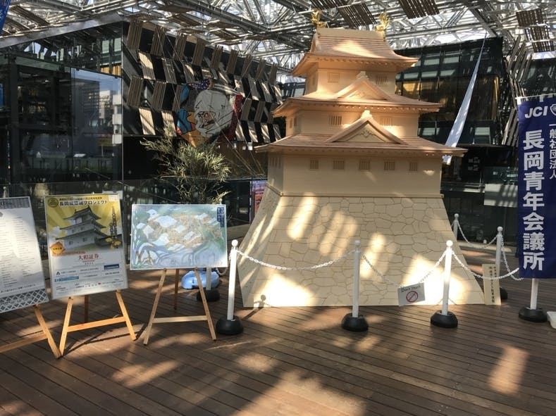 新潟県長岡市は、今年、初代長岡藩主・牧野忠成が長岡城主になった 1618 年開府からち ょうど 400 年という節目を迎えます。長岡開府400年を盛り上げるべく長岡城のシンボルと言われる御三階櫓を復活せようと一般社団法人長岡青年会議所が立ち上がりました。今年の1月に「長岡城築城プロジェクト実行委員会」を組織。長岡市から後援をいただきプロジェクトを推進しています。
