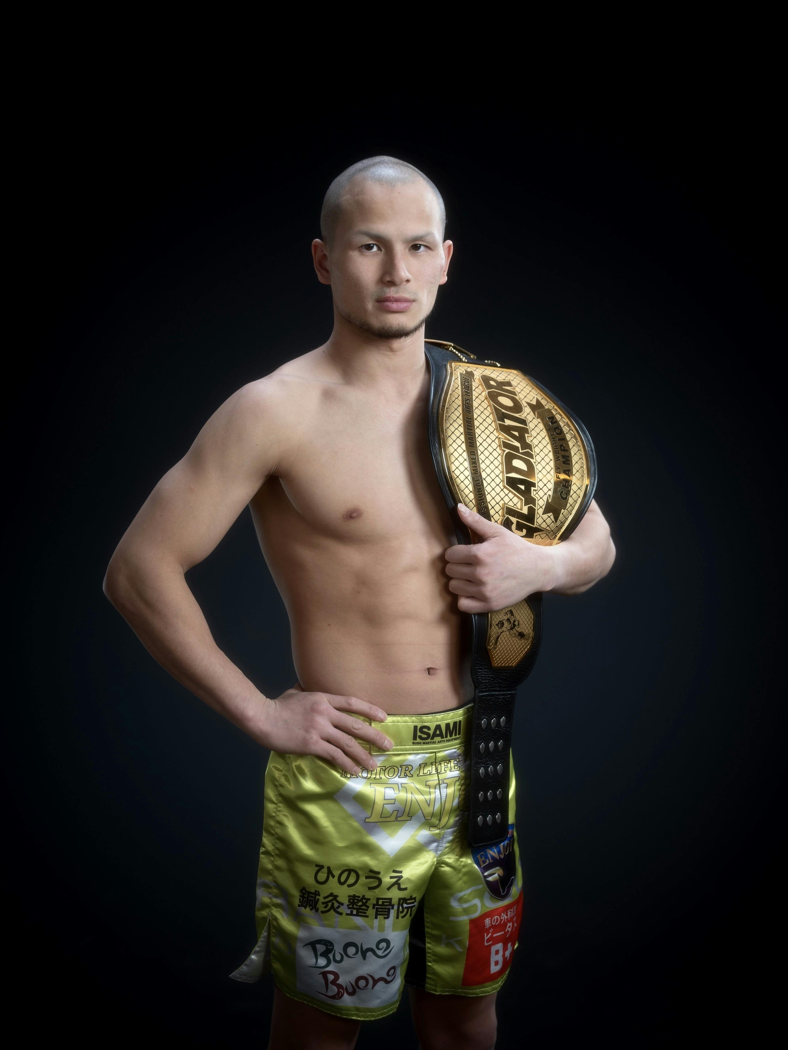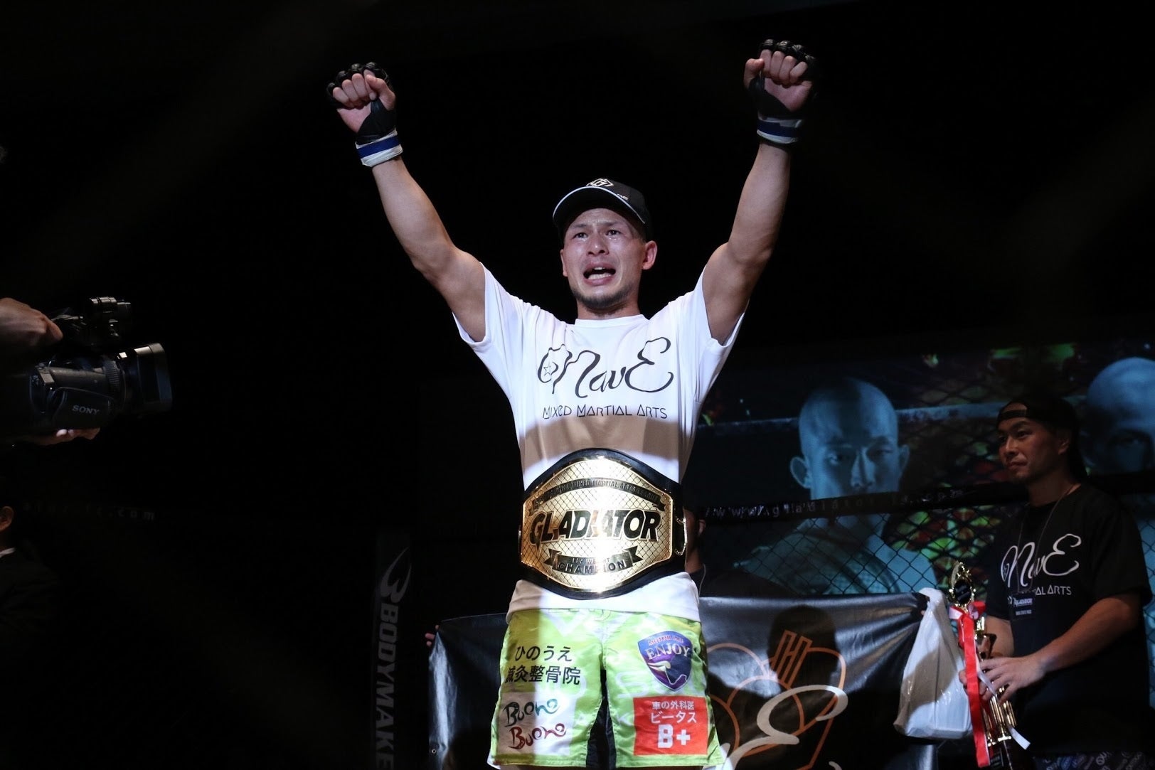 三重県へ帰省し格闘技環境が突然ゼロになりましたが、三重で仕事をしながら奈良や大阪へトレーニングに通っていました。そんな生活をしながら、国内タイトルマッチや国際戦・海外戦などを経験し、2018年には〝GLADIATOR/グラジエーター〟というプロMMAプロモーションで自身初となるチャンピオンベルトを獲得し、GLADIATOR フライ級 王座へと輝きました。