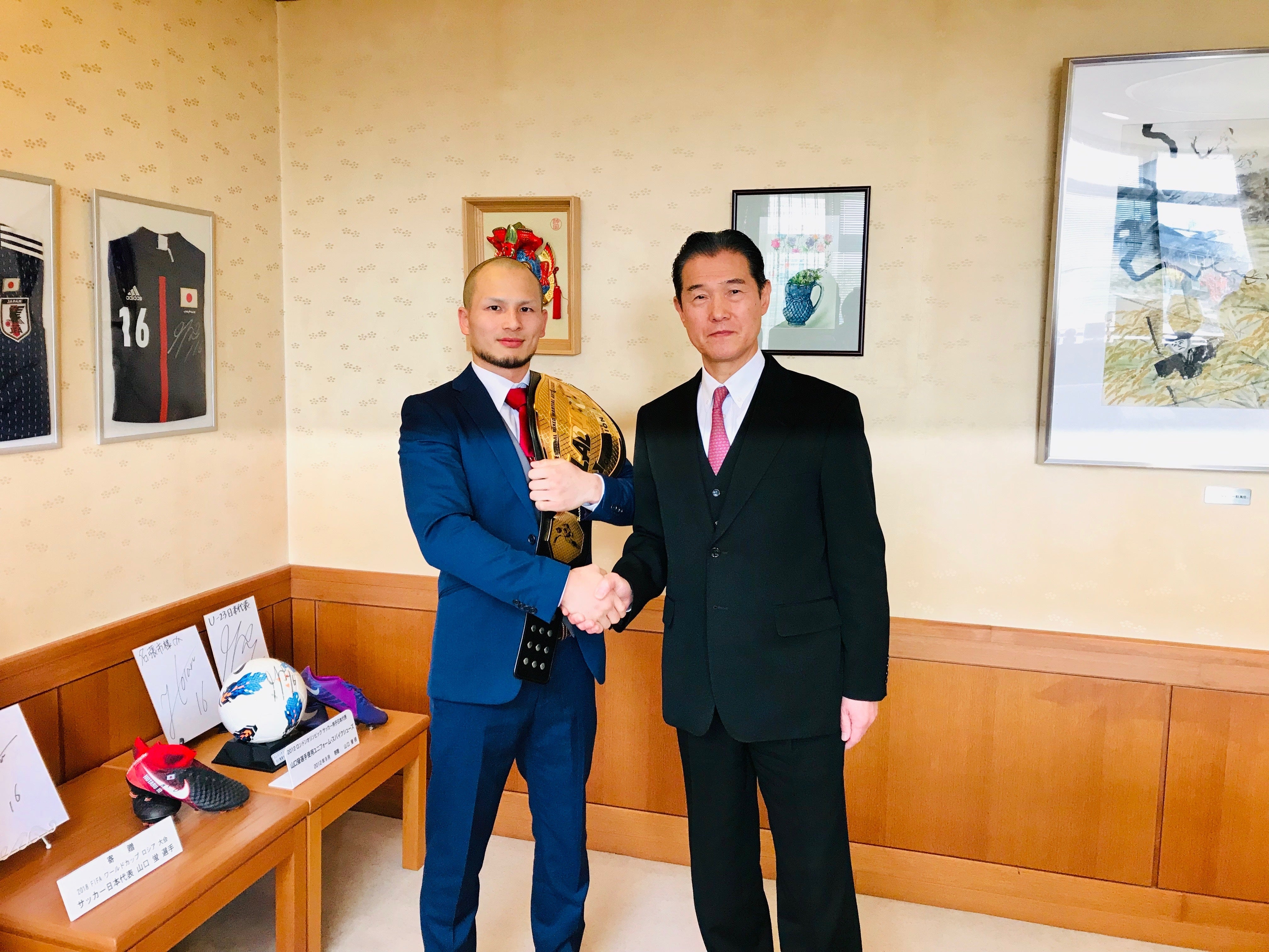 その翌月に名張市長へ表敬訪問させていただき、地元名張市で初の試みとなる総合格闘技ジムを開きたいという事と地元を盛り上げたいという思いも伝えさせていただきました。