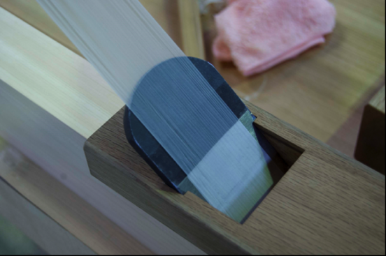 ▲かんなの薄削り(ミクロンの世界の削りの技術)