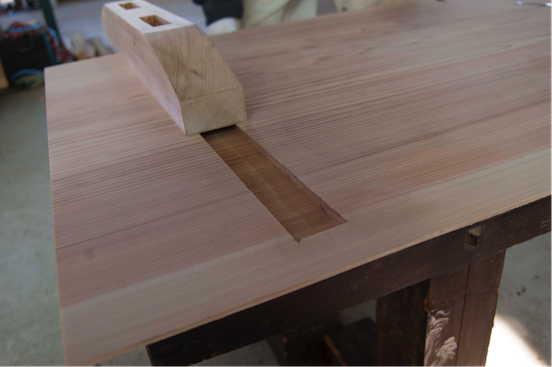 蟻桟を入れることで板の反りを防ぐことができます。木の特性を知っていた先人が残した技術です。