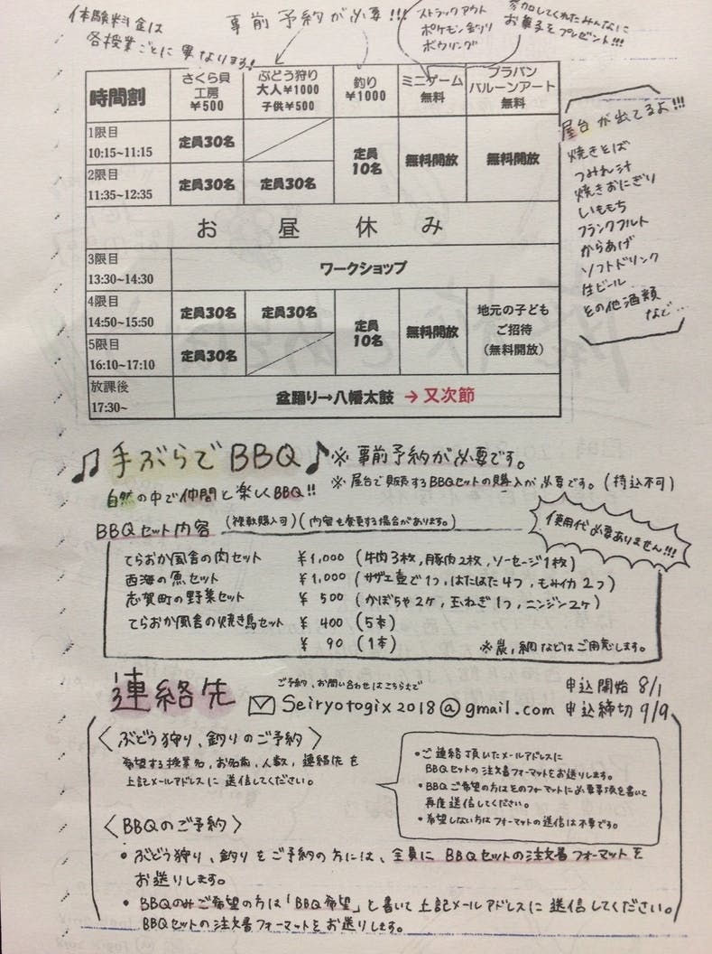【「廃校であそぼう」日程、体験授業紹介】