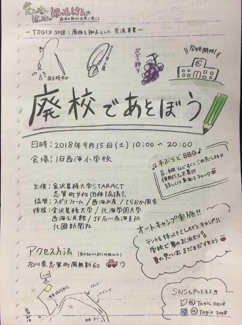 ↑廃校でのイベントなので学校のノートをモチーフにしたデザインになっています