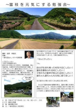 5月から八頭町富枝地区で「太田邸」を活用した地域づくりについて考えるワークショップを行っています。住民の皆さんの活発なご意見をいただきながら、「太田邸」をクリエイティブコアと位置付け、「暮らしの文化」「食の文化」「農の文化」を復活させ、住民が主役の創造的な地域づくりを実現したいと思います。