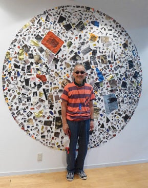 ▲写真作品「写真曼荼羅」の前に立つ池本喜巳