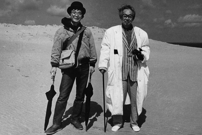 ▲池本喜巳(左)と植田正治(右)鳥取砂丘にて