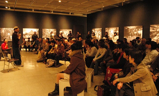 ▲2004年鳥取県立博物館企画展会場にて行われたアーティストトークのようす