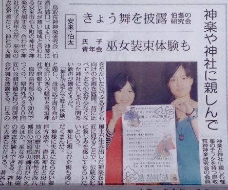 こんにちは! 徳林です。 本日の山陰中央新報朝刊に、鳥取荒神神楽研究会のクラウドファンディングの取組みが掲載されました。 カラーで紙面の四分の一と、とても大きく扱っていただきました。 取材していただいたK記者さん、ありがとうございました。 早速、さきほど電話で支援の申込みがありました。 クラウドファンディングの支援の仕組みやクレジット決済がわかりにくいという方もおられて、そういった方からの問い合わせがありますが、銀行振り込みでも対応していますので、下記メールアドレスにご連絡ください。 kaguken0211j@sea.chukai.ne.jp 月曜は日曜の神楽公演の様子が新聞に掲載されましたし、神楽を広めるという目的の活動は、とても順調です! あと22日ちょっとですが、目標達成のためにがんばりますので、みなさま応援よろしくお願いします! 記事のシェアも助かります! もちろん支援もお待ちしています!