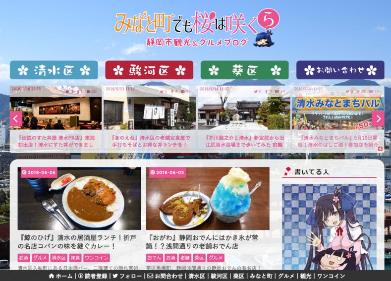 私が運営している静岡市観光&グルメブログ『みなと町でも桜は咲くら』への広告スポンサープランです。