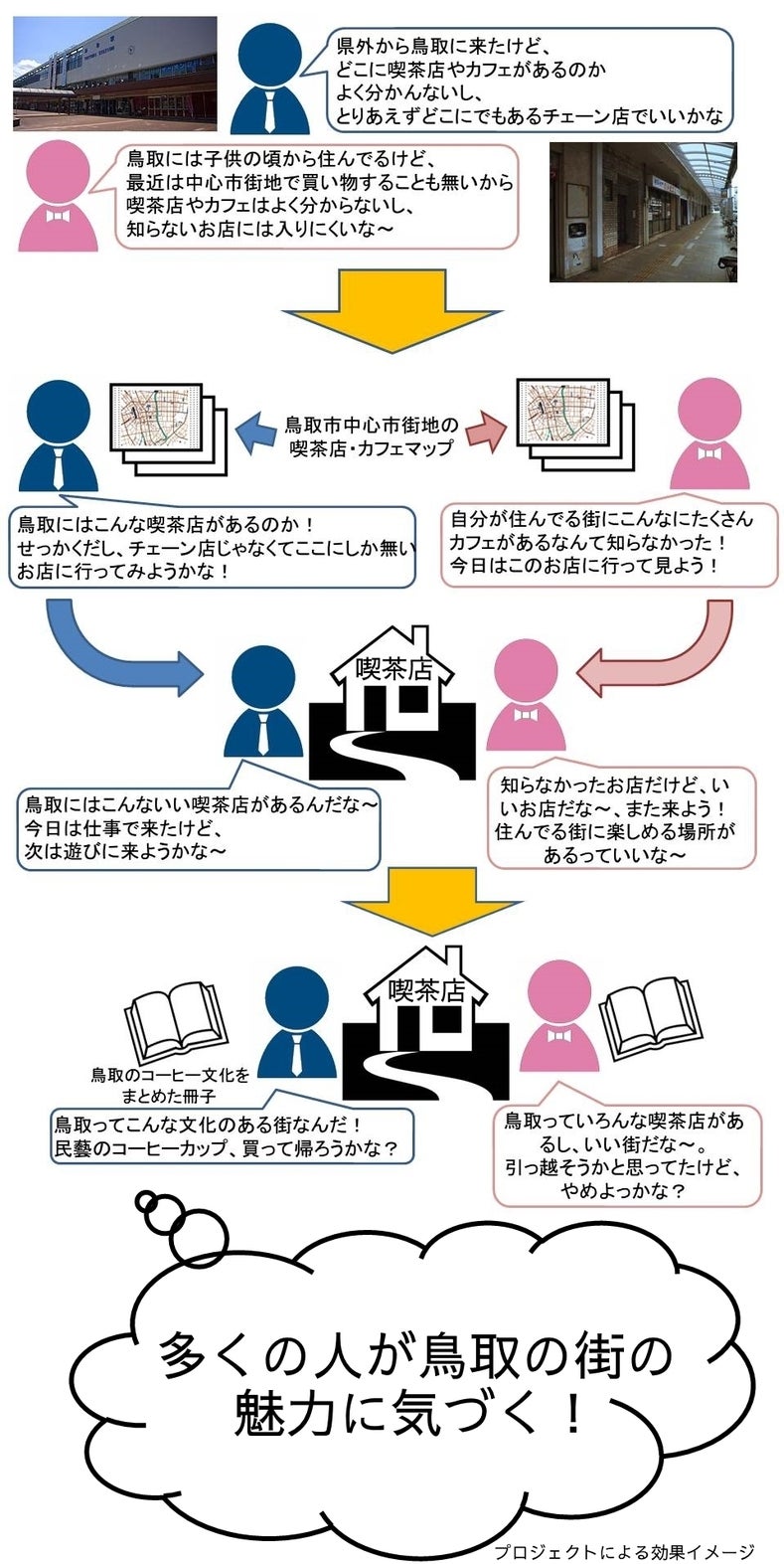 この冊子・コーヒーマップを読んで鳥取市内に住む方が読み、喫茶店に通う人が増える。