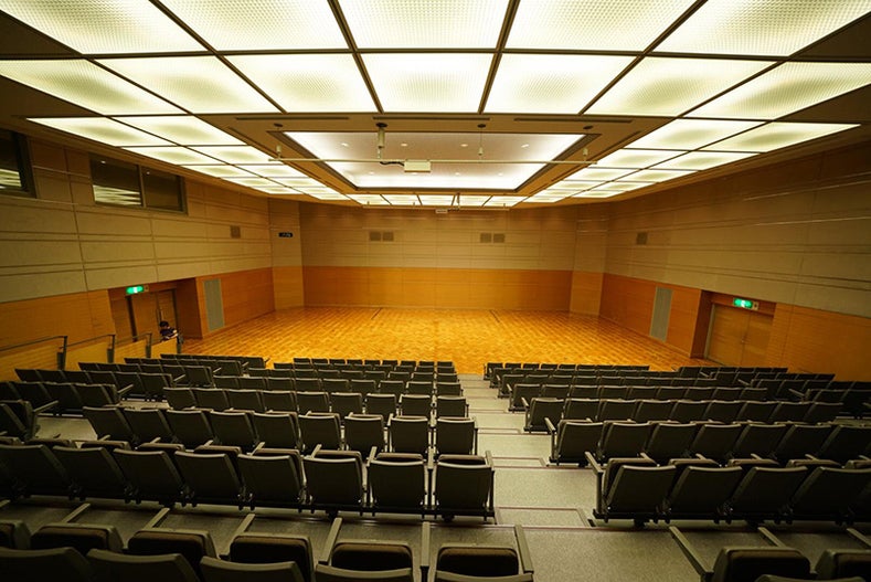 ▼ 講演がおこなわれる石川県地場産業振興センターのコンベンションホール