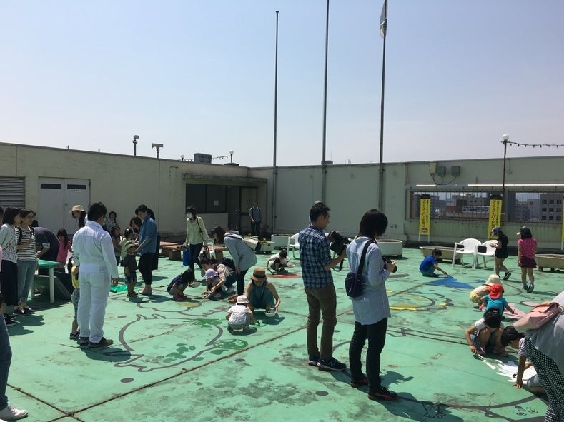 昨年秋のイベントに続いて、今年の5月22日には鳥取市在住のイラストレーターClara(クララ)さんとコラボレートし、鳥取大丸屋上に子供たちとペンキでペイントをするイベントを行い、200名以上の子供連れに参加いただきました。