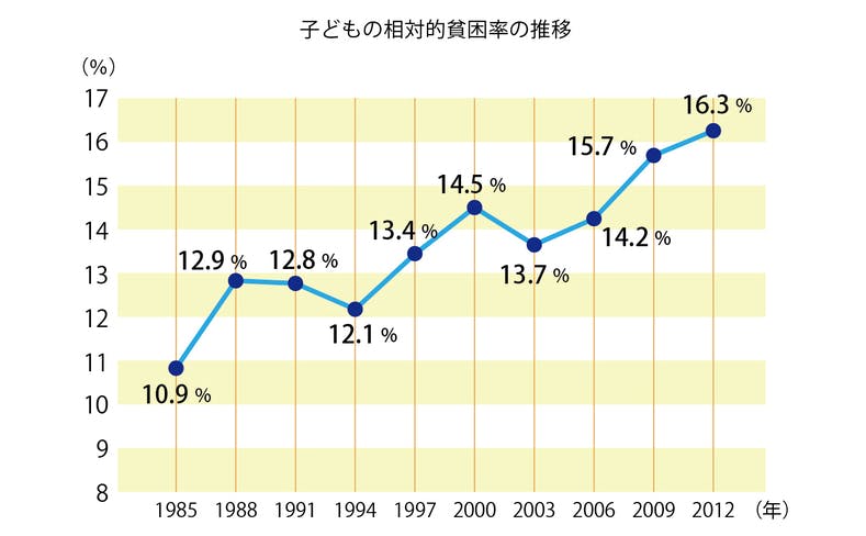 ※ 厚生労働省の国民生活基礎調査を基に作成した子どもの相対的貧困率の推移グラフ。