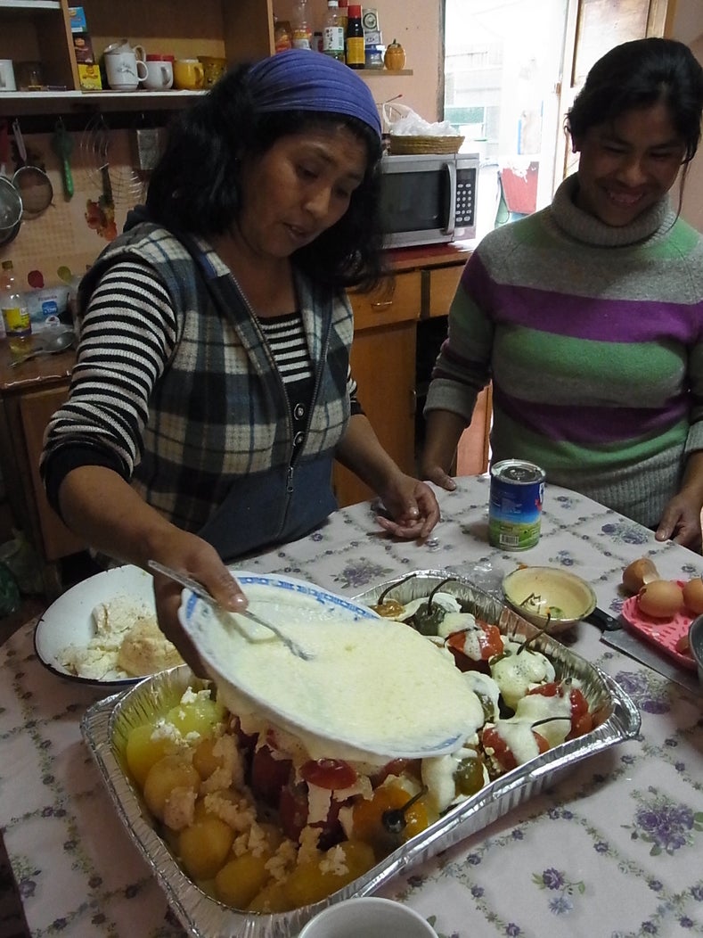 ペルーのアレキパという町に サンドラの家 (http://sandra.skoworks.net/house/index.html)というお宿がある。 何かの事情で日本人を泊めてあげたのがきっかけで、宿やっちゃいなよ!みたいなノリで始まったという話を聞いたような気がする。 口コミだけで、日本人バックパッカーが押し寄せてくるというサンドラの家。居心地が良すぎて旅立てないという伝説のお宿です。 かく言うわたしも、同じドミに泊まっていた日本人からサンドラの家の噂を聞いて、予約もしないで押し掛けたのでした。 もうベッドの空きはなかったのだけど、近所に住むおばあさんの家に寝かせてもらえることになって、その後は、サンドラの家のサンドラ家族の寝室のベッドで眠るという図々しさで2週間ほど滞在しました。 ホームステイ感覚のお宿というサンドラの家。 毎日サンドラの料理講座が開かれます。 異国の家庭料理が習えるという体験と、サンドラの作る料理が抜群に美味しい!!という喜び。 町の食堂や屋台で食べていた料理が、こんな風に作られていたんだ!ペルー料理って意外と手が込んでいるんだな!などという発見がありました。 滞在した時期が年末年始だったことで、ペルーの家庭的な年越しを味わうことができました。 年越しのディナーは豚肉のステーキを食べるらしい。 デイナーの後は友達も来てダンスパーティー さらにはぶどうを12粒食べてお願いごとをするとか・・ 街に花火が上がって、隣近所からは爆竹の音が。no そして、 市場で見かけていた黄色いパンツの謎も解けました。 年越しの時に黄色いものをもらうとハッピーになるそうです。わたしは、黄色いTシャツをもらっちゃいました。 更には、 私がトレッキングに行く日に、雨が止むようにとおまじないをしてくれました。 黒い紐に火をつけて、燃やしながら、もにゃもにゃとおまじないを唱えます。 ホントに!? と思うような迷信だけど、その気持ちが嬉しかったなぁ。 当然のことのように雨は上がり、私は快適にトレッキングすることができました。 こんな風に、 ホテルでは体験できないようなペルーの習慣や文化を味わうことができ、家庭料理も満喫することができるサンドラの家。 さすが!ホームステイ感覚のお宿です。 観光地を巡るだけでなく、暮らすように旅したい!を満たしてくれるお宿でした。 市場に買い物に行ったり、大学にパンケーキを買いに行ったり、ホームセンター行ったり、サンドラの生まれた村に行ったり、温泉に入ったり・・・。サンドラのお供でいろんなんところへ連れて行ってもらいました。 ガイドブックには載っていない、ただ人が暮らしている、特別じゃない場所をプラプラするのは本当に楽しい体験でした。 サンドラの家は、 親戚の子どもが家に遊びに来た。という感覚で私の面倒をみてくれているように感じました。何かと気を使ってくれて、こんなことまでやってくれるのか!という毎日でした。 これが、ホスピタリティというものか!と感動するお宿です。 私も、サンドラの家みたいなお宿になりたい。 最低限のルールは必要だけれど、決まり事にがんじがらめにされたくはない。最初から上手くはいかないかも知れないけれど、いろんなことを試しながらより良いかたちを目指します。 ペルーと日本。いろいろと違いはあるものだから、やり方は同じじゃないと思うけれど、 サンドラに教えてもらったホスピタリティ、心からのおもてなしを わたしは、しゃん亭から実践していきます。 どうぞよろしく。