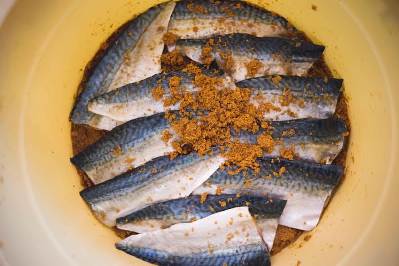 池田商店の人気商品「こんかこんか」。鯖などの魚を糠に長期間漬けた、北陸の伝統的な発酵食品である。