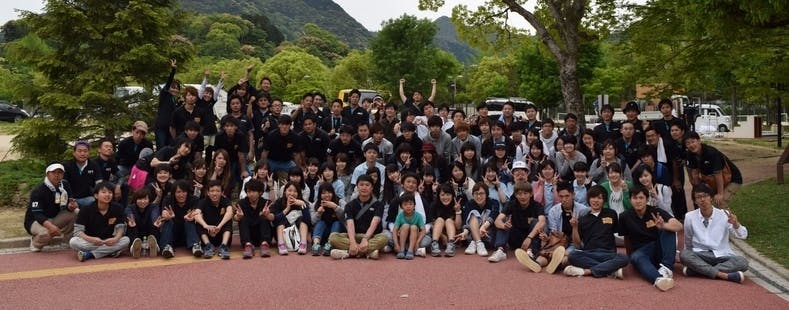 ※第43回青空天国いこいの広場での山口青年会議所メンバーと大学生ボランティアの皆さんとの集合写真。