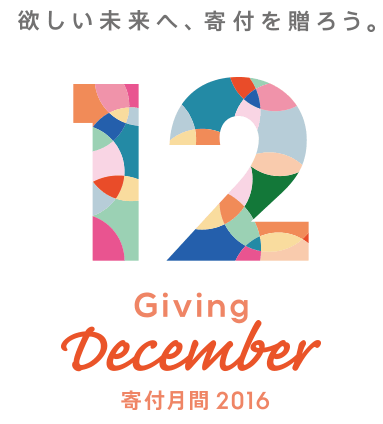 寄付月間(Giving December)は、NPO、大学、企業、行政などで寄付に係る主な関係者が幅広く集い、寄付が人々の幸せを生み出す社会をつくるために、12月1日から31日の間、協働で行う全国的なキャンペーンです。この寄付月間は、特定の団体への寄付をお願いするものではありません。一人ひとりがこの機会に寄付について考えたり、実際に寄付してみたり、寄付月間についてソーシャルメディアで広げたりすることや、寄付を受ける側が寄付者に感謝して、きちんと寄付の使い道を報告することが進むきっかけにしたいと考えています。(「寄付月間2016」サイトから)