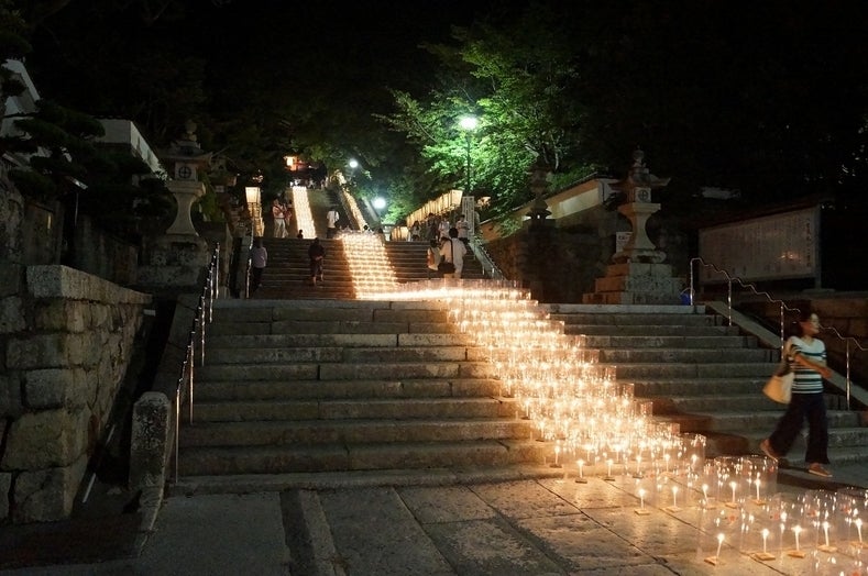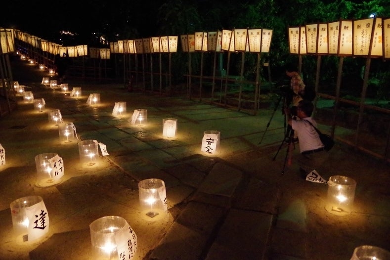 中でも、「万灯のゆうべ」は2000本以上のろうそくが夏の夜を幽玄に彩ります。