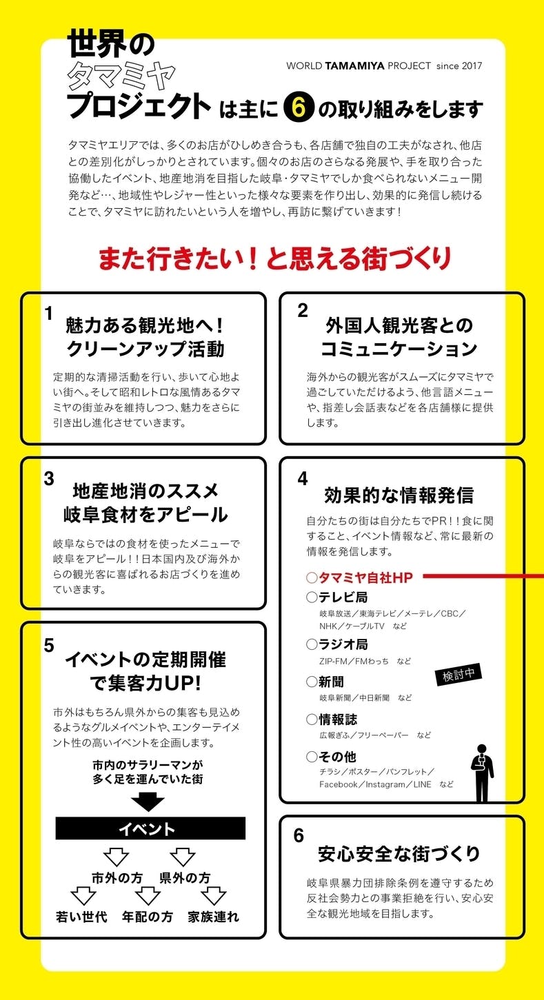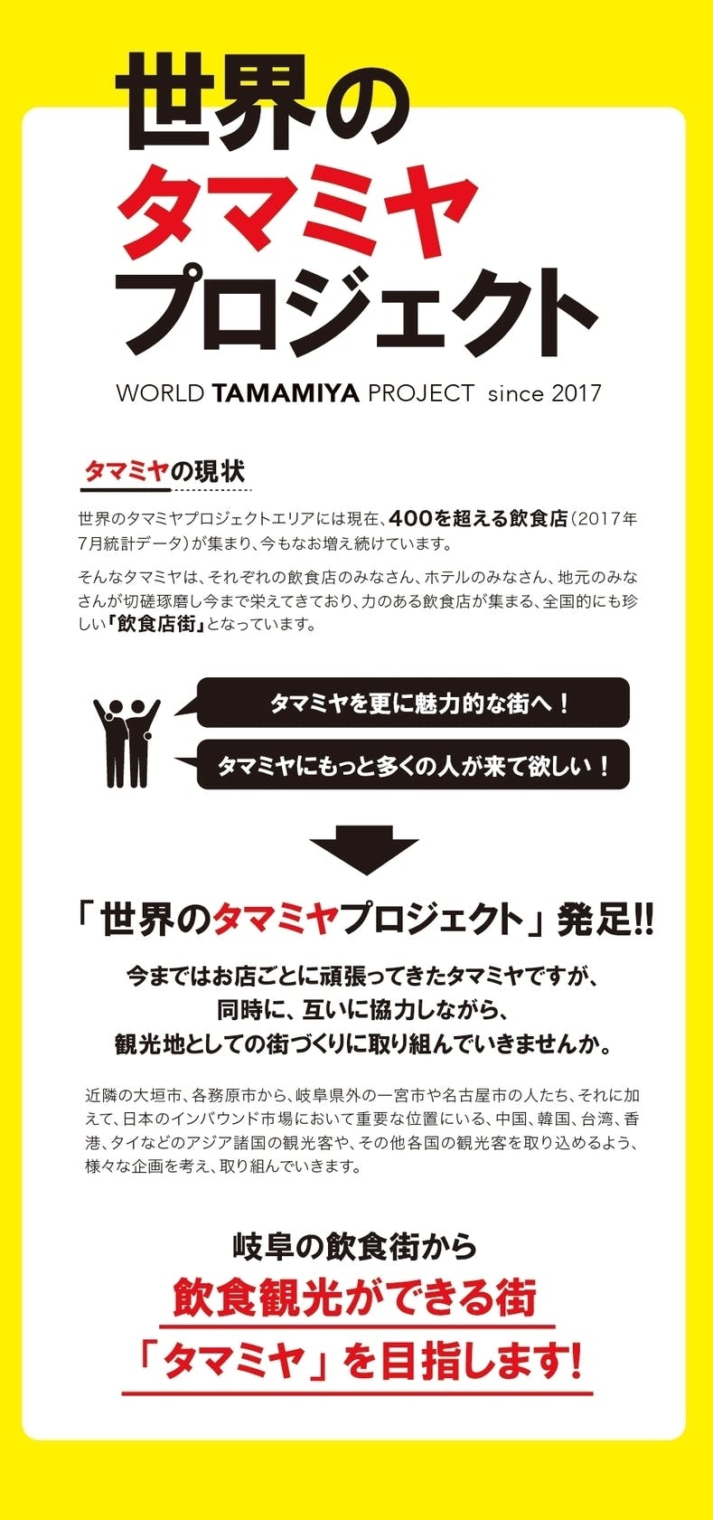 以上を実施し、岐阜の飲食街から飲食観光が出来る街【タマミヤ】を目指します!