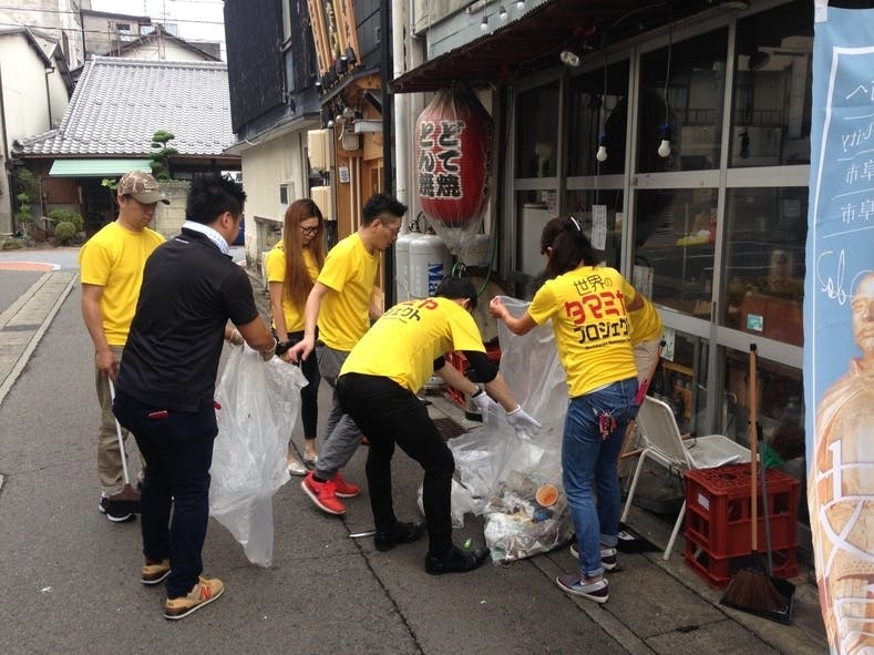 毎月第4水曜日朝8時から町の清掃活動を行い、歩いて心地よい街へ。