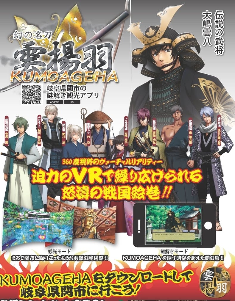 主人公(プレイヤー=あなた)は幻の名刀「雲揚羽」を探して、キャラクターたちと共に数々の謎を解きながら、日本刀鍛錬、小瀬鵜飼の他、板取、洞戸、武芸川、上之保、武儀など関市内のスポットをめぐり、各地域の魅力に触れていただくことができます。